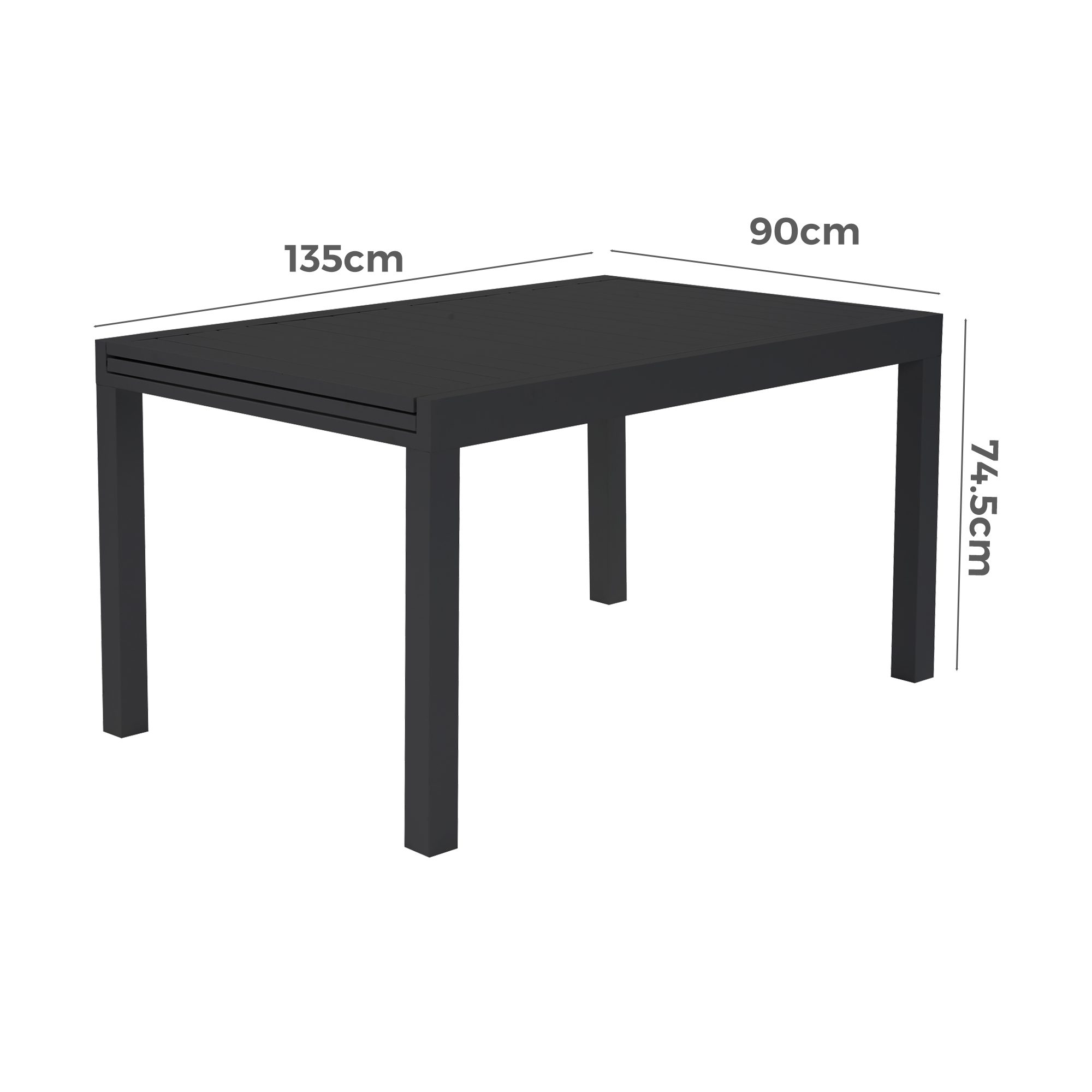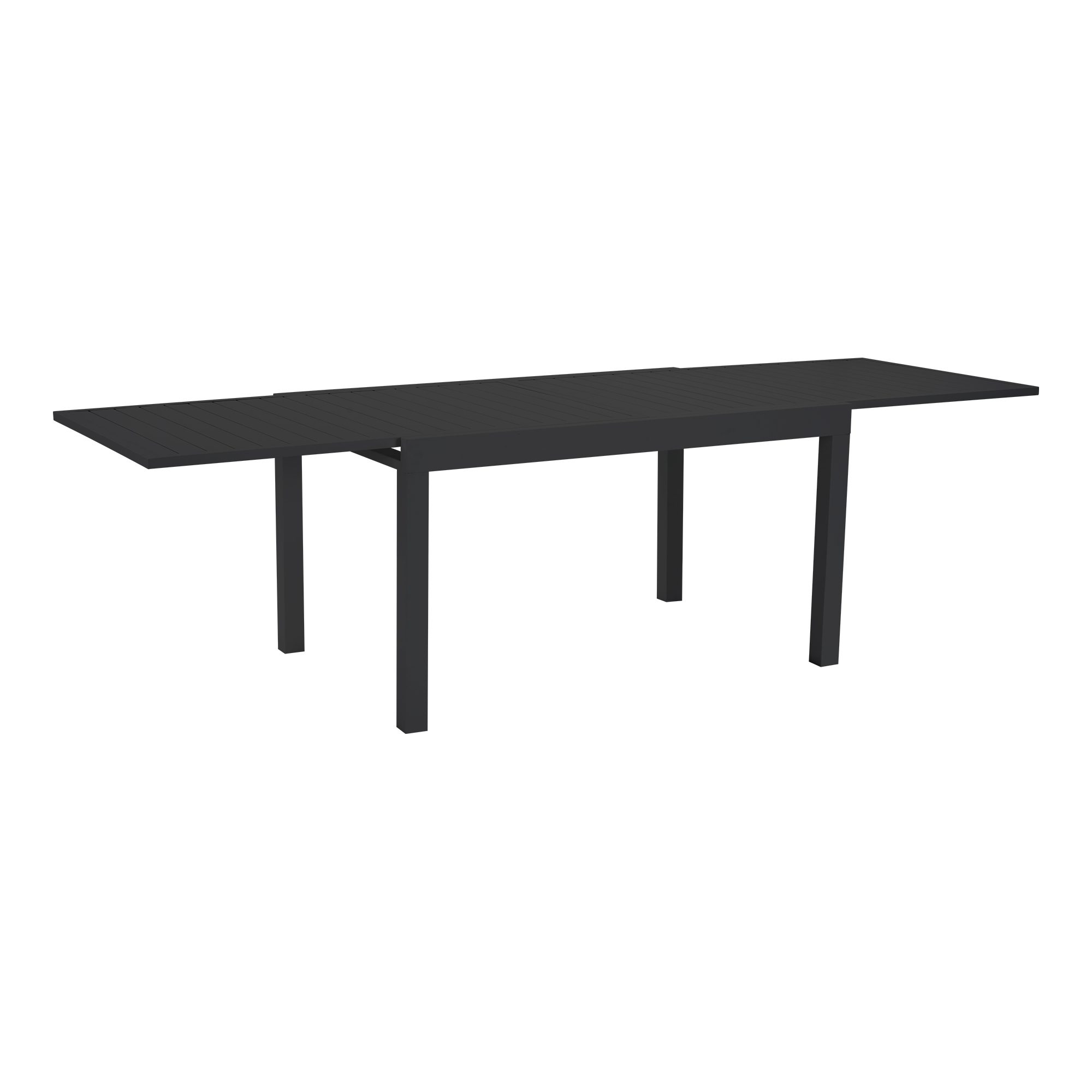 The table is extendable – and its slick mechanism makes it a breeze to slide the length out or in – making it ideal for smaller get-togethers or bigger weekend parties. Water just runs right off the slatted aluminium top, and the charcoal finish is pretty much impervious to the sun, moisture and rust – all of which means the table looks like new even after a few seasons.