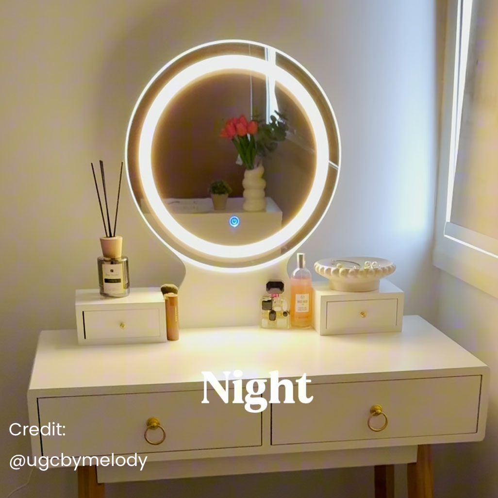 - Touch screen freely to switch 3 color lighting mode: warm white, cool white, warm yellow.