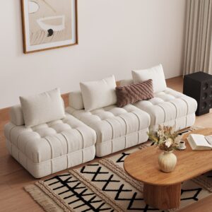 The removable cushions offer flexibility for repositioning, and concealed feet enhance its modern design. Hard plastic foot pads under each leg safeguard your floors from damage. With minimal setup required and the perfect blend of style and comfort, this 3-Seater Boucle Sofa Set is a wonderful addition to any home.