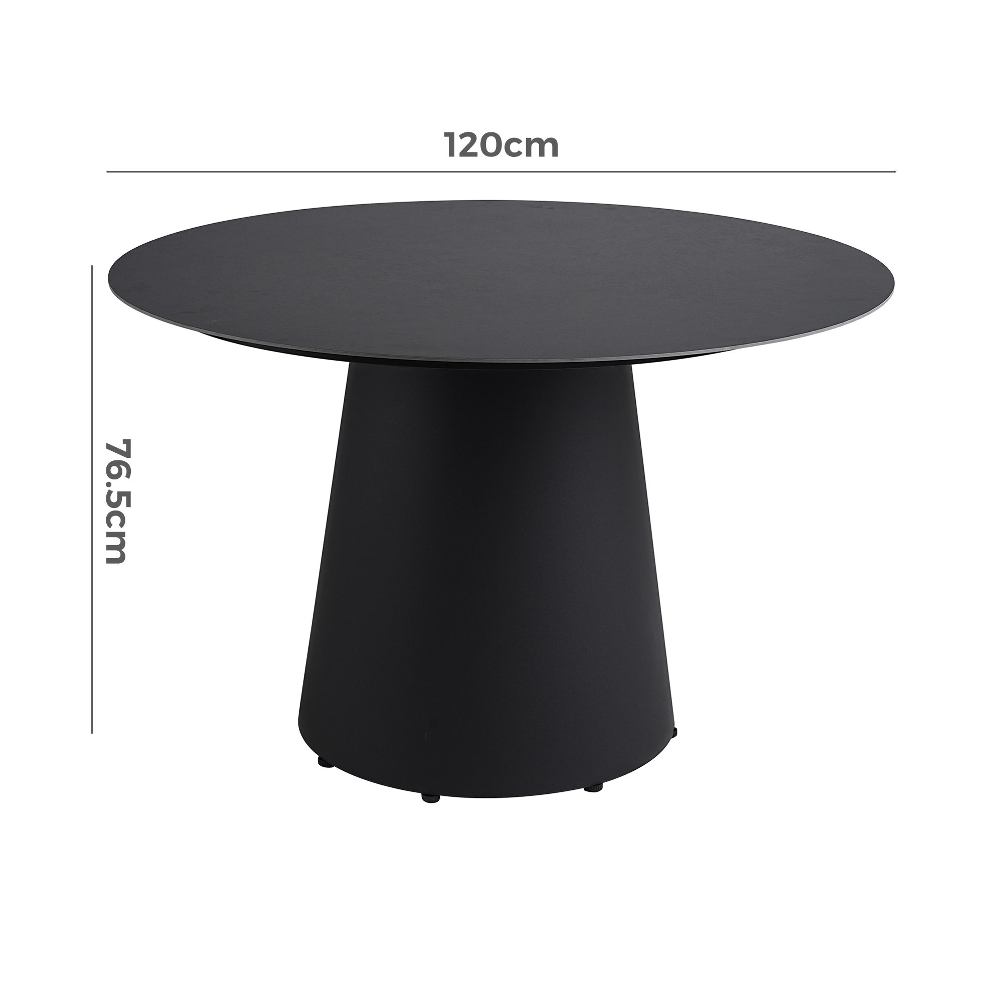 The 120cm round tabletop provides a spacious surface for family dinners or small gatherings of friends.
