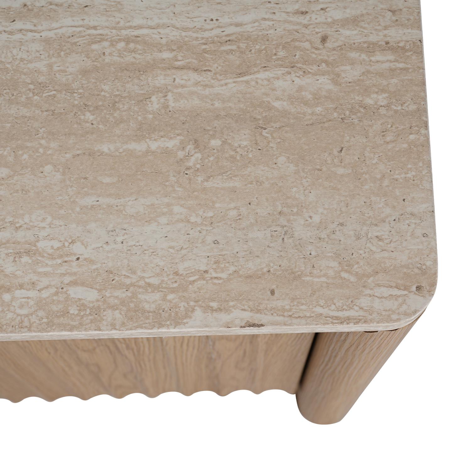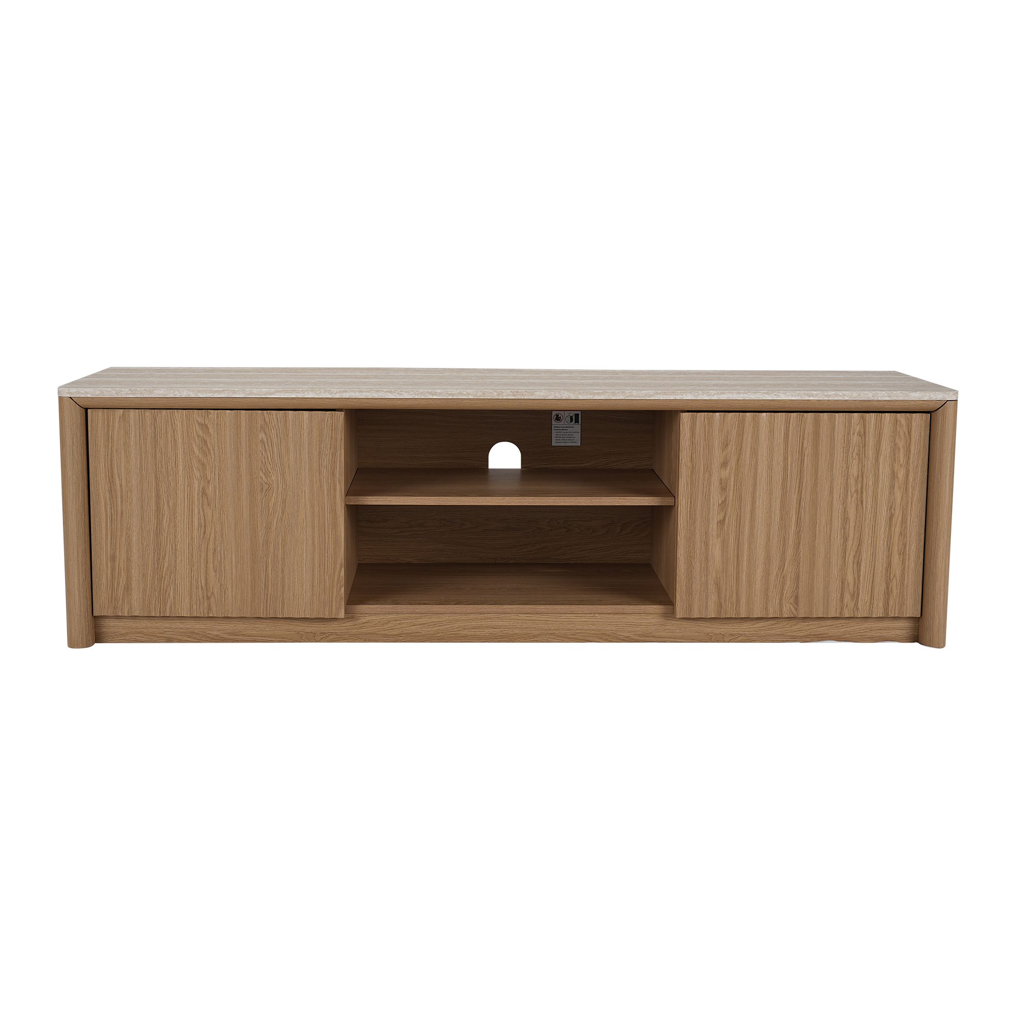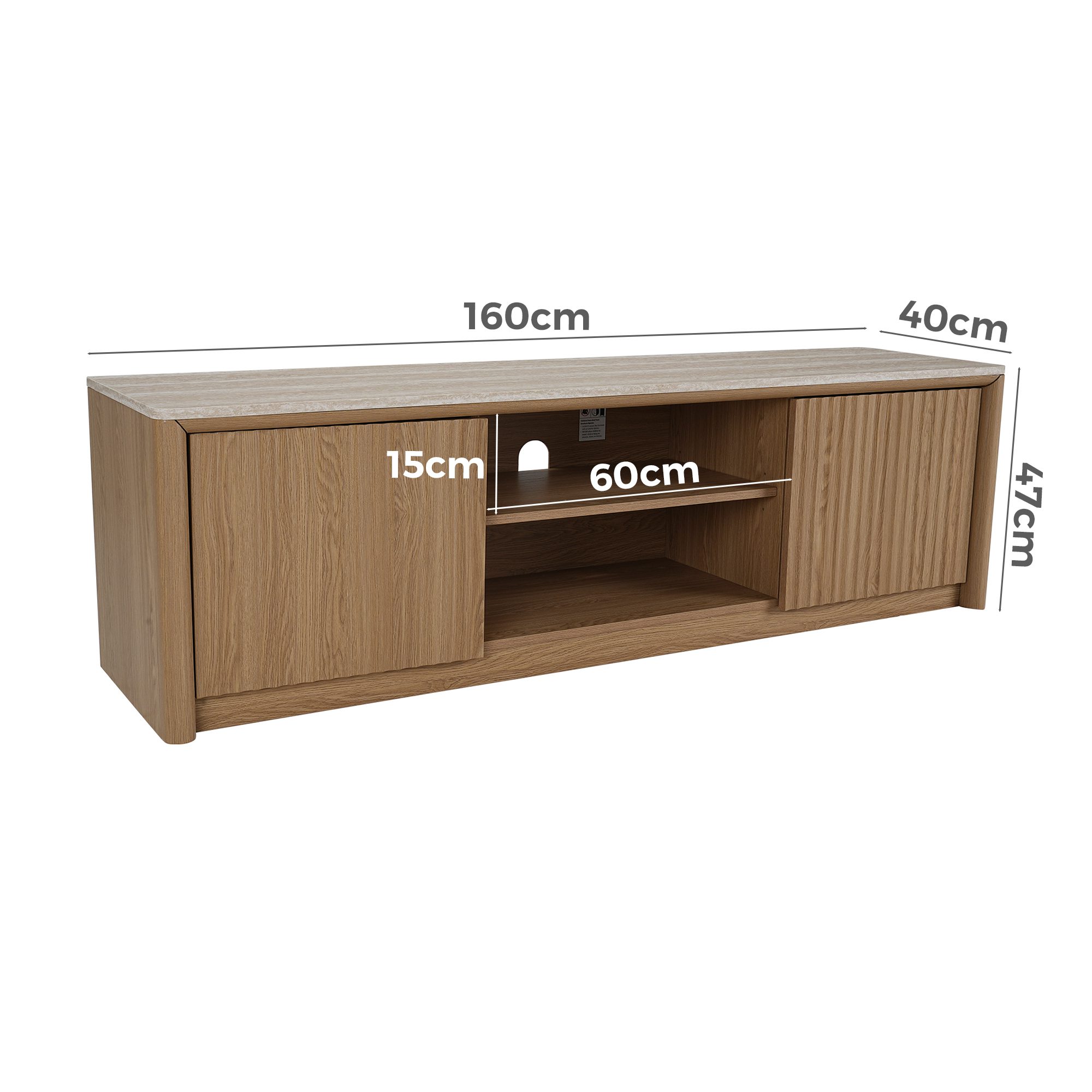 This Natural TV Stand with MDF Tabletop resembles a nature spirit in your home, its warm, rustic hue radiating a simple yet cozy ambiance that instantly bridges the gap between people and nature. Its clean, flowing lines eschew excessive ornamentation, yet its pure design exudes a distinctive charm that seamlessly complements any decor style. The cabinet features a well-organized interior layout with multiple shelves and drawers, effortlessly storing TV equipment, media discs, remotes, and more to keep your living room tidy and orderly. Crafted from premium wood, it offers sturdy durability, providing stable support for your television while adding a touch of natural elegance and quality to your daily life.