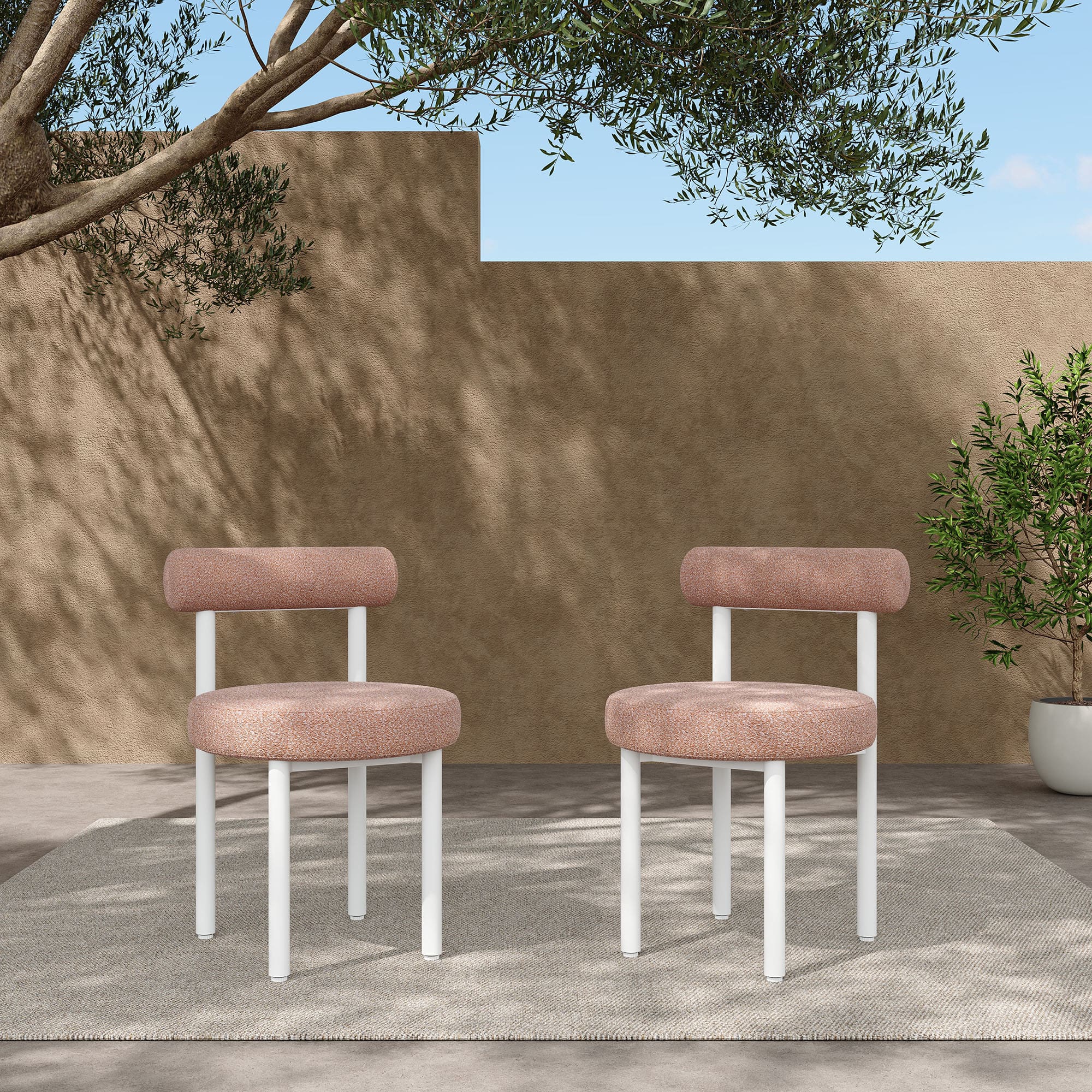 Softly sculpted and gently warm in tone, the Ori Butterscotch Shell chairs add a natural glow to outdoor spaces. With curved lines and a cheerful, white-toned frame, they bring charm to balconies, patios, and garden nooks alike.