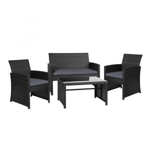 For dining and relaxing al fresco, the Rattan Outside Lounge Set is a comfortable and practical solution. Add this stylish garden furniture set to your patio or decking to create the ideal space for entertaining. Made from weather-resistant PE wicker with a powder-coated frame and a tempered glass tabletop, this set of a loveseat, two armchairs, and a matching coffee table is designed to stand up to all types of weather conditions and promise you durability.